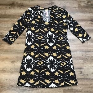 Anthropologie Size L Emmelee Dress Boho Print Long Sleeve Knit Black Tan White