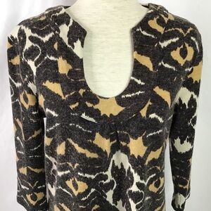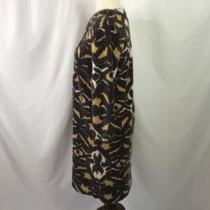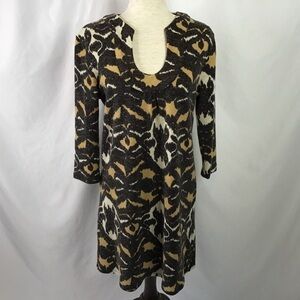 ANTHROPOLOGIE Size L Emmelee Dress Boho Print Long Sleeve Knit Black Tan White