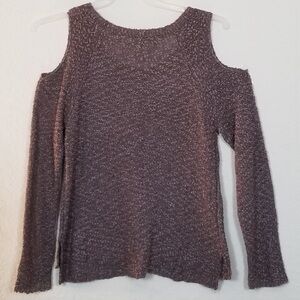 ANTHROPOLOGIE Sky + Sparrow Acrylic Loose Weave Cold Shoulder Sweater