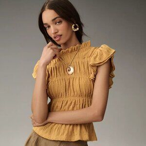 ANTHROPOLOGIE: Smocked Top: Gold