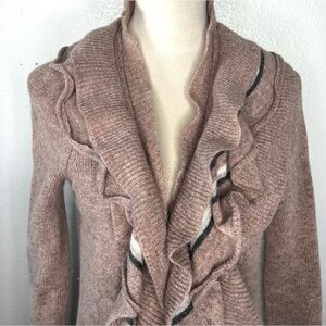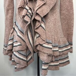 ANTHROPOLOGIE Sparrow Every Which Way Wool Sweater Ruffle Cardigan Size Small