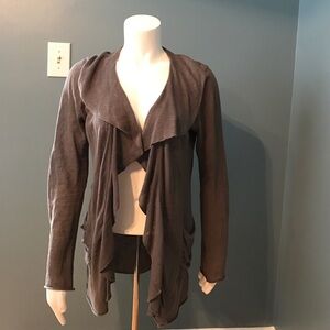 ANTHROPOLOGIE Sparrow gray linen ruffle cardigan