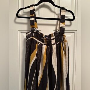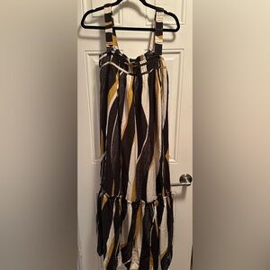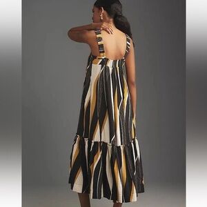 ANTHROPOLOGIE Square-Neck Waistless Midi Dress, Black Motif, Size Large NWT