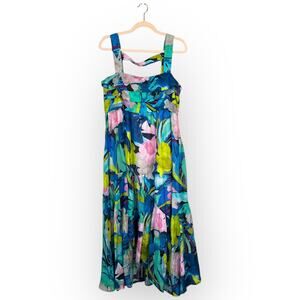 ANTHROPOLOGIE Sunny Midi Dress Silk Blend Tropical Size Medium READ
