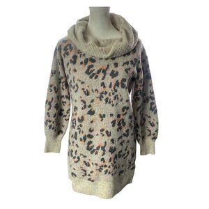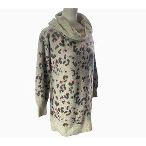 ANTHROPOLOGIE Sweater Emma Mock Neck Animal Long Sleeve Pullover Grey XS 78-19