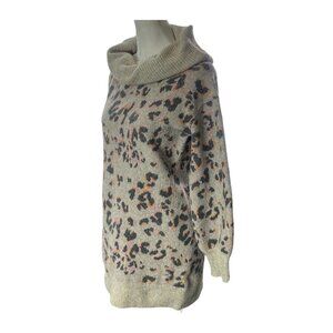 Stay cozy and stylish with this Anthropologie sweater featuring a mock neck and long sleeves. The tight-knit blended material with an animal print pattern in shades of gray adds a touch of wildness to your winter or fall outfits. Ideal for travel, casual or business occasions, this relaxed fit pullover is perfect for women who want to look good and feel comfortable. Hand wash only for proper garment care.