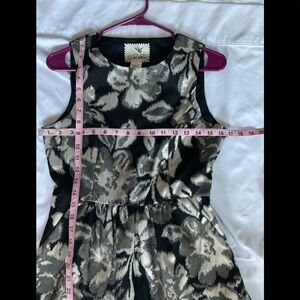 ANTHROPOLOGIE TABITHA Black Gold Floral A-Line Dress Lined w/ Pockets Sz 4