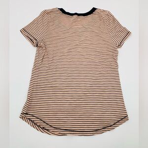 ANTHROPOLOGIE T.La BLUSH NAVY BLUE SHORT SLEEVE STRIPED STITCHED TEE TOP Sz Med