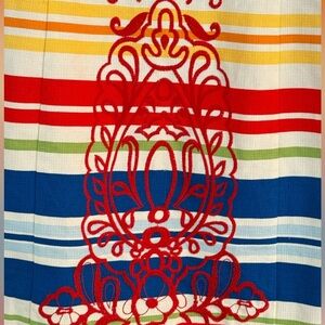 •ADDITIONAL INFORMATION: Sleeveless, concealed rear zipper, lined, vibrant stripes, gorgeous red embroidered pattern