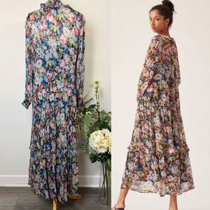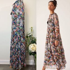 ANTHROPOLOGIE | The Marais Printed Chiffon Maxi Dress | Floral Boho Long Sleeve