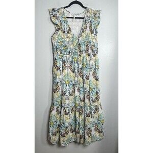 ANTHROPOLOGIE The Peregrine Midi Dress Large Floral Flutter Sleeve Boho Bohemian