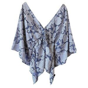 ANTHROPOLOGIE Tie Front Blue Floral Gingham Caftan One Size NEW