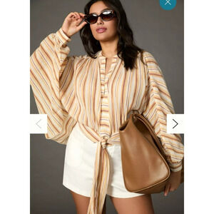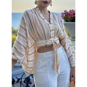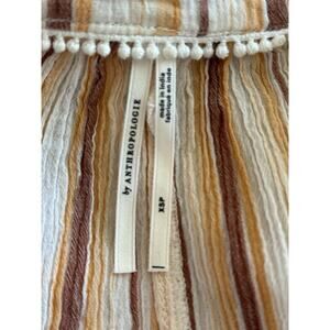 ANTHROPOLOGIE Tie-Front Blouse 100% Cotton Striped Relaxed Drapey XSP Boho EUC