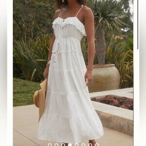 ANTHROPOLOGIE Tiered A Line White Sleeveless Dress Size M NEW