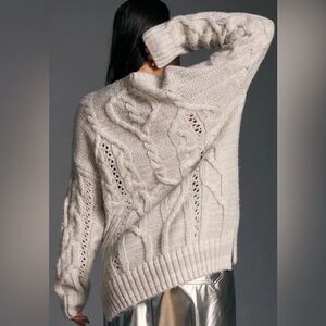 Gorgeous ANTHROPOLOGIE V-NECK DRAMA CABLE TUNIC SWEATER. Never been worn, with tags attached. 26% acrylic, 25% cotton, 23% wool, 21% polyamide, 5% metallic
