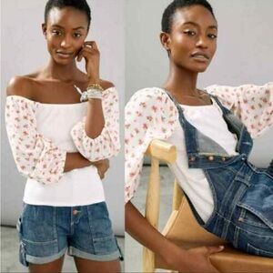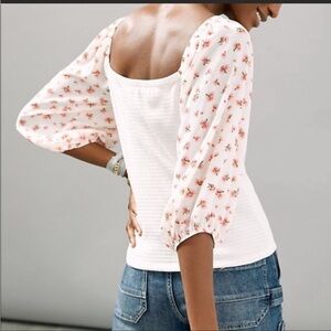 ANTHROPOLOGIE W5 Concepts ROSELLE Smocked Top White Pink Sz M NEW