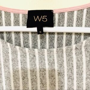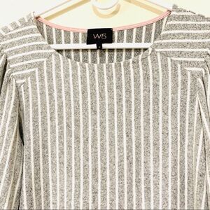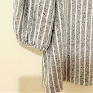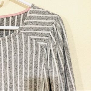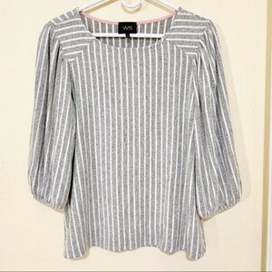 Amazing butter soft trendy blouse with puffed shoulders and gray white stripes from Anthropologie.