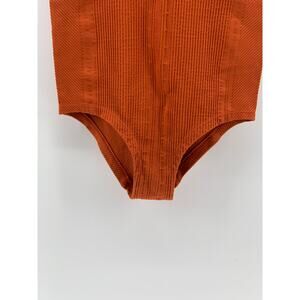 ANTHROPOLOGIE Women's Dark Orange Rib Stretch V-Neck One-Piece Bodysuit SZ XS/S