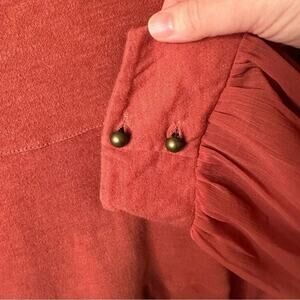 ANTHROPOLOGIE Womens V Neck sheer Sleeve blouse button cuff dusty Rose bohemian