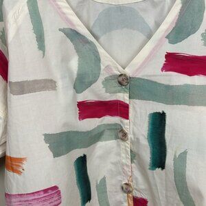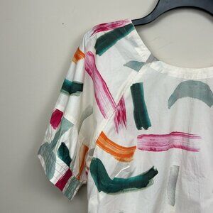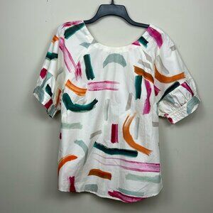 ANTHROPOLOGIE X Aimee Clarke button back brushstroke print short sleeve blouse
