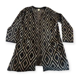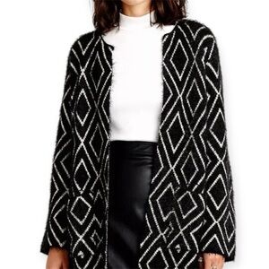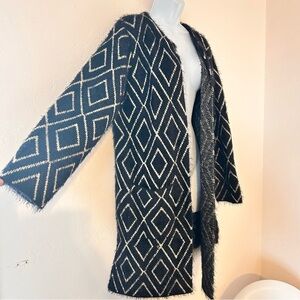 ANTHROPOLOGIE X HOSS Black Geometric Open Front Eyelash Cardi Coat Size M