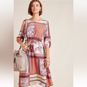 ANTHROPOLOGIE X ALDOMARTINS SERENITY PATCHWORK SHIRT DRESS