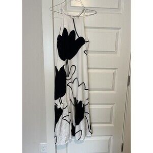 Anthro corey Lynn Carter white and black bold tulip floral print 100% cotton midi dress
