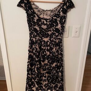 This beautiful formal dress is classically elegant. It has a slip that goes underneath. Brand is Yoana Baraschi