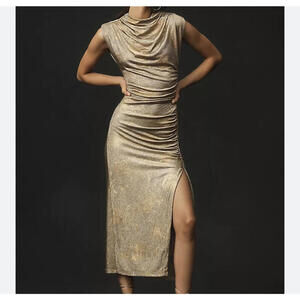 ANTHROPOLOGIE gold Maya ruched cowl neck maxi dress sz XL