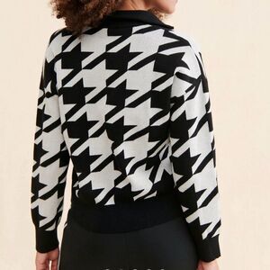 This bold houndstooth sweater from Anthropologie and Vigoss is the perfect blend of cozy and cool. Featuring a sporty quarter-zip neckline and eye-catching oversized print, this pullover is your new go-to for casual days, coffee runs, or layering up in style. Brand new with tags—never worn!