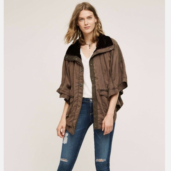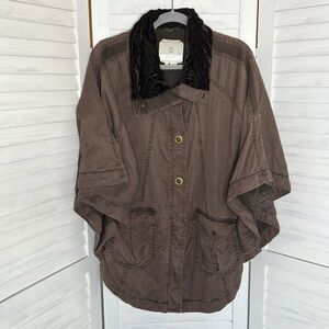 ANTHROPOLOGIE, Hei Hei, Taupe, Brown, Todra, Crushed Velvet Neck, Lined, Cape, M/L, oversized, industrial, poncho, brown