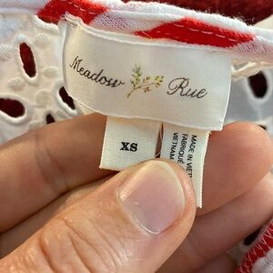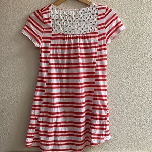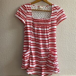 Anthropologie meadow Rue red and white knit and white eyelet Tunic top. Size XS, cotton blend, see pictures for details.