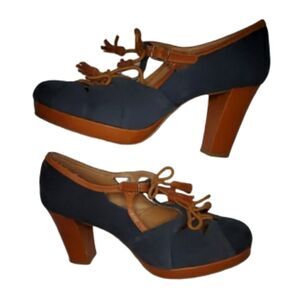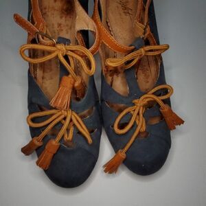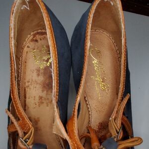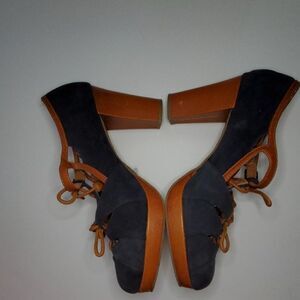 Miss Albright from Anthropologie suede heel. Beautiful suede closed toe tassel heels. Great for a retro look! Navy blue and brown. Some minor wear, pictures show the shoes accurately so please look at them closely. 3.5" heel with rubber bottoms so they won't skid. These were sold at anthropologie.