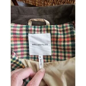 ANTHROPOLOGIE x AVEC LES FILLES Relaxed Plaid Wool Blend Blazer XL Patches