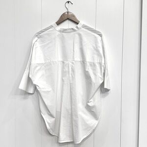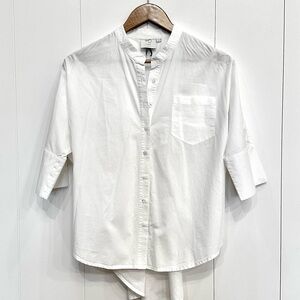 ANTHROPOLOGIE x HD in Paris Mandarin Collar Button Down 1/2 Sleeve High/Low Hem White — M