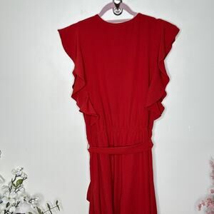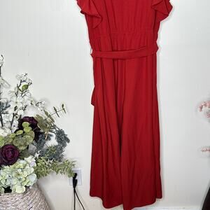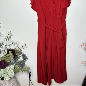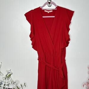 ANTHROPOLOGIE x HUTCH Crepe Flutter Sleeve Wide Leg Jumpsuit Tomato Red {3Q10}