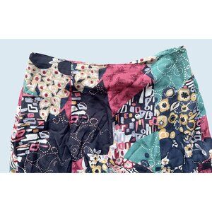 Pretty skirt by Anthropologie / Kachel. Vibrant multi color abstract and floral patchwork design. 2 front slits. Midi length. Hidden side zipper. 65% viscose / 35% silk. Size 6. Pre-owned and gently worn in really nice condition!