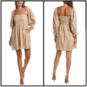 ANTHROPOLOGIE x KOURT Portia Smocked Linen Dress M Puff Sleeve Milkmaid Regency