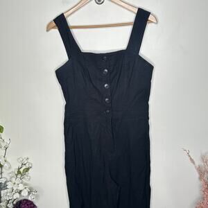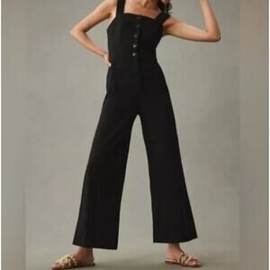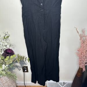 Anthropologie Maeve The Colette Sleeveless Wide Leg Jumpsuit 12 Black Linen