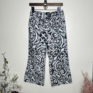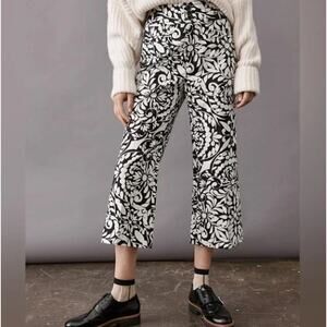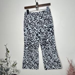 ANTHROPOLOGIE x MAEVE Plive Floral Cropped Flare Pants Black White Sz 4P {3V6}