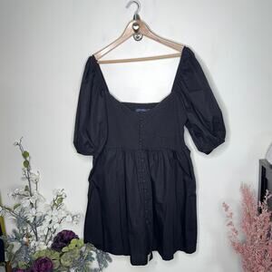 ANTHROPOLOGIE x MAEVE Puff-Sleeved Sweetheart MIni Dress Black {3C39}