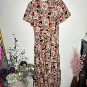 ANTHROPOLOGIE x MAEVE Somerset Maxi Dress Pink Floral Cotton Poplin Sz XL {Z14}