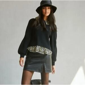 ANTHROPOLOGIE x MAEVE Textured Black Twofer Sweater Floral {G15}