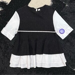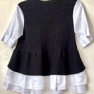 ANTHROPOLOGIE x Moth Twofer Layered Peplum SS Ruffle Sweater Crisp White & Deep Charcoal — S