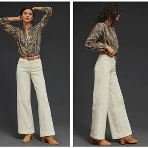 ANTHROPOLOGIE x PILCRO The Gwen Wide Leg Corduroy Pants Ivory Sz 33 NWT {3D18}