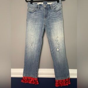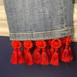 ANTHROPOLOGIE x Pilcro Light Blue Jeans with Red Beadwork and Tassels 26