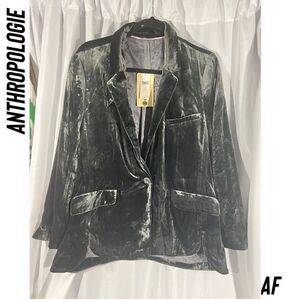 ANTHROPOLOGIE ALESSIA VELVET BLAZER IN CARBON GREEN NWT XLP
