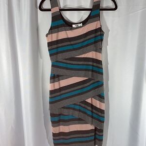 Anthropologie Bailey 44 exclusive frontera bandage midi bodycon dress in a beautiful gray, pink and muted turquoise abstract striped pattern. Make a flirty summer statement in this mini dress. Its bold abstract design will have you smiling and earning compliments all day long. It’s so soft and hugs your curves in all the right places - super flattering 98% Rayon, 2% spandex Slim fit Pullover styling