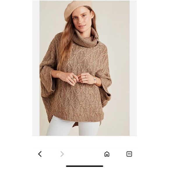 Anthropologie XS NWT Corinne Cable Knit Poncho Sweater Taupe Tan