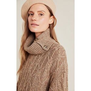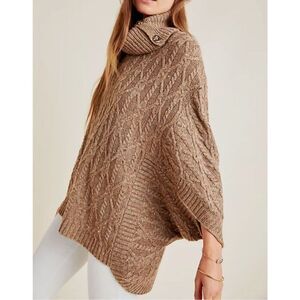 ANTHROPOLOGIE Corinne Cable Knit Poncho Sweater Small Taupe Tan Cowl Oversized